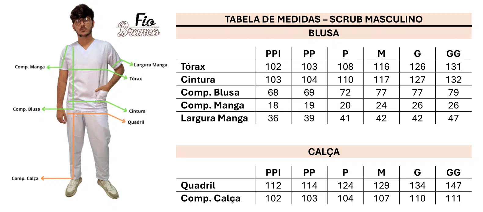 Guia de Medidas Scrub Masculino